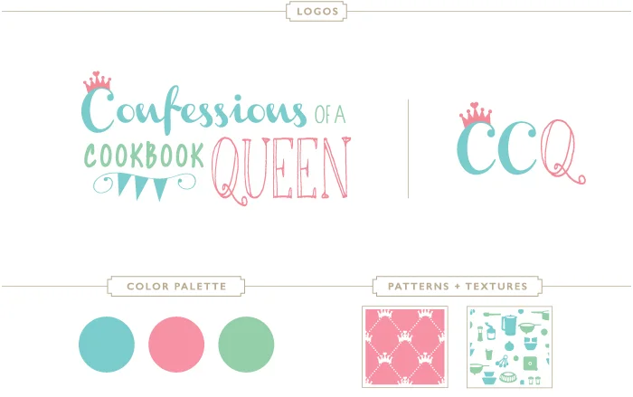 Quirky and fun is the right recipe for the logo of Confessions of a Cookbook Queen, an online company that inspires fun and creativity in the kitchen. No queen would be complete without her crown!